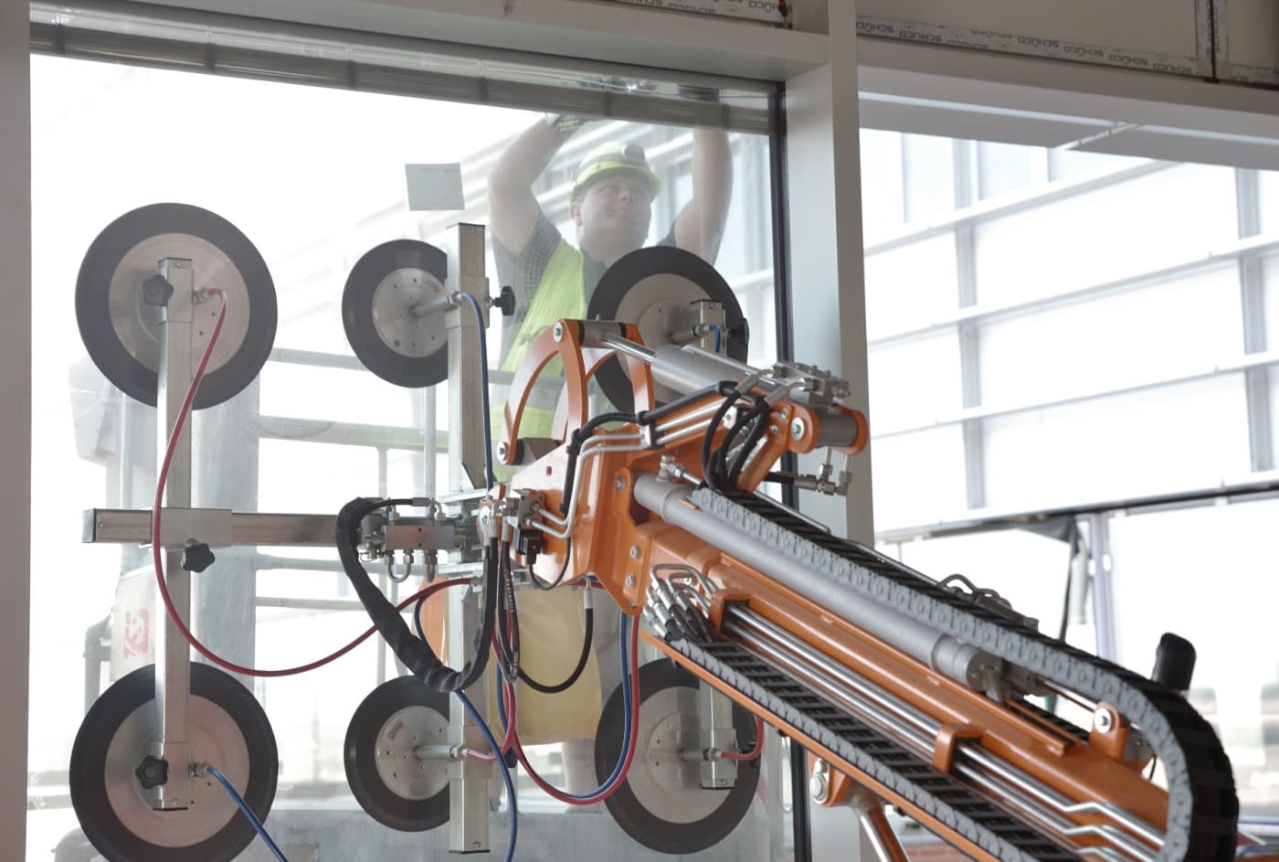 Kai Andersens team monterer hvert vindue på få minutter ved hjælp af glasløfteren SL 1009.