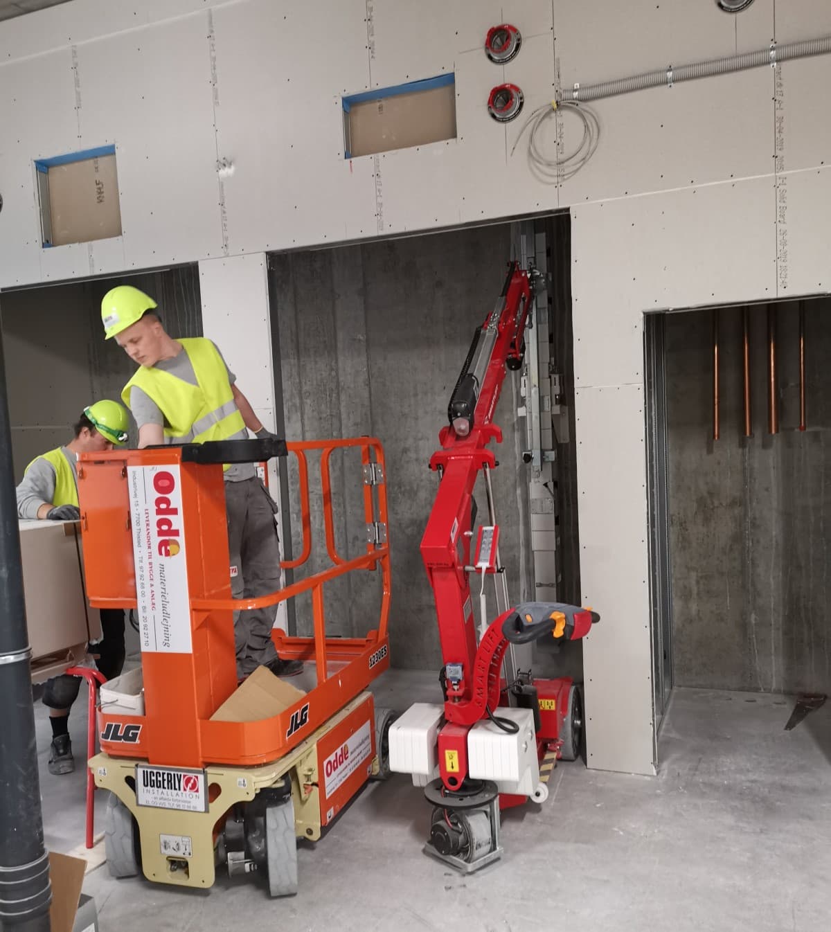 Uggerly Installation valgte ligeledes at anvende Smartlift til el-entreprisen på grund af den øgede produktivitet maskinerne medfører. Alternativt skulle Uggerly Installation montere strømskinnerne med en almindelig lift eller et stillads ved hjælp af 4-5 medarbejder, hvilket vil medføre en lav produktivitet og mange tunge løft for medarbejderne. Og netop øget produktivitet og et godt arbejdsmiljø var udslagsgivende faktorer for at vælge Smartlift til at løse det komplekse installationsprojekt: