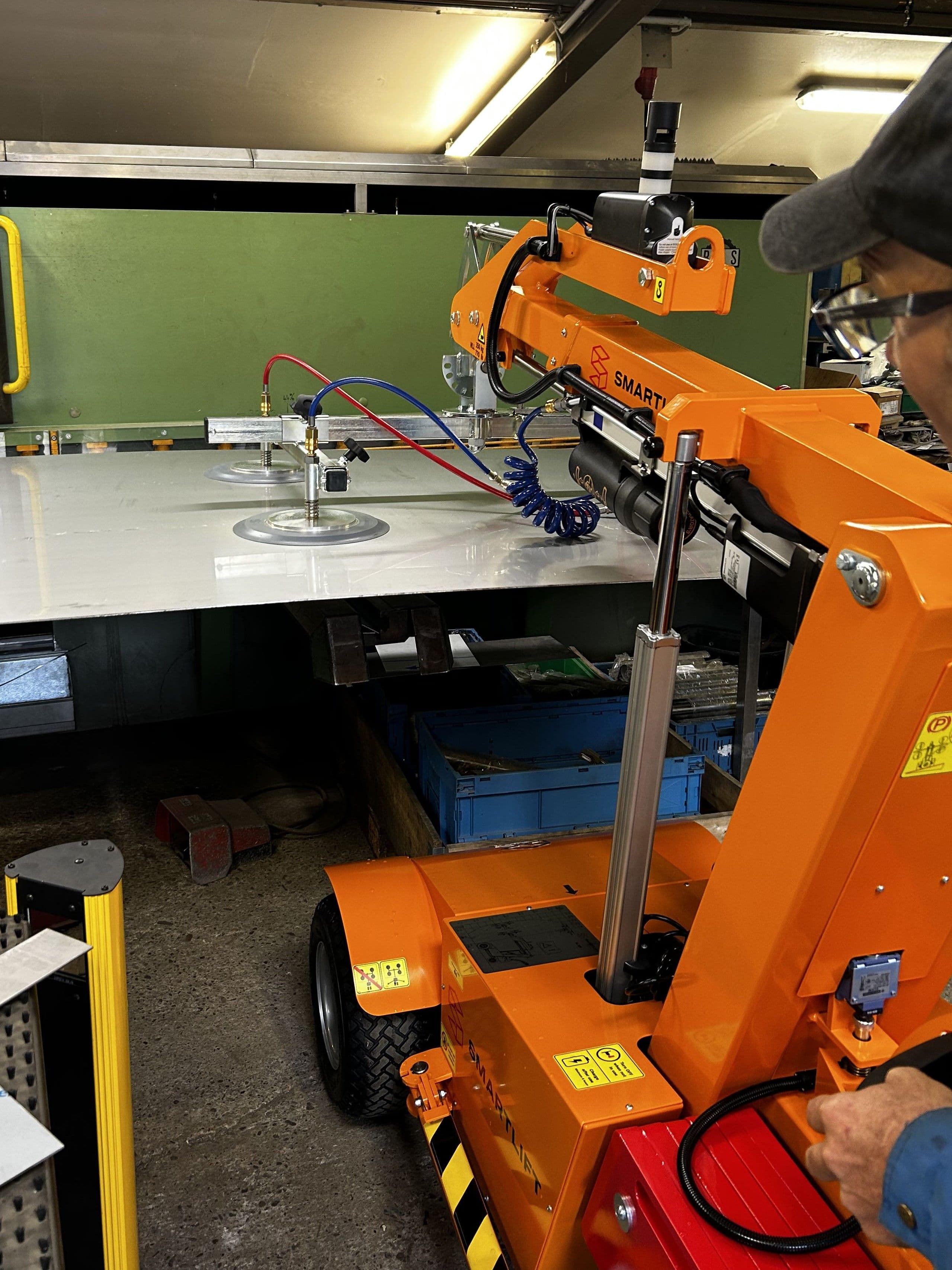 The vacuum lifter requires minimal workspace, is easy to operate, and can be easily moved within the production area. The client is extremely satisfied, as their employees are no longer burdened by heavy lifting tasks and can now use their time more efficiently for the actual processing work.