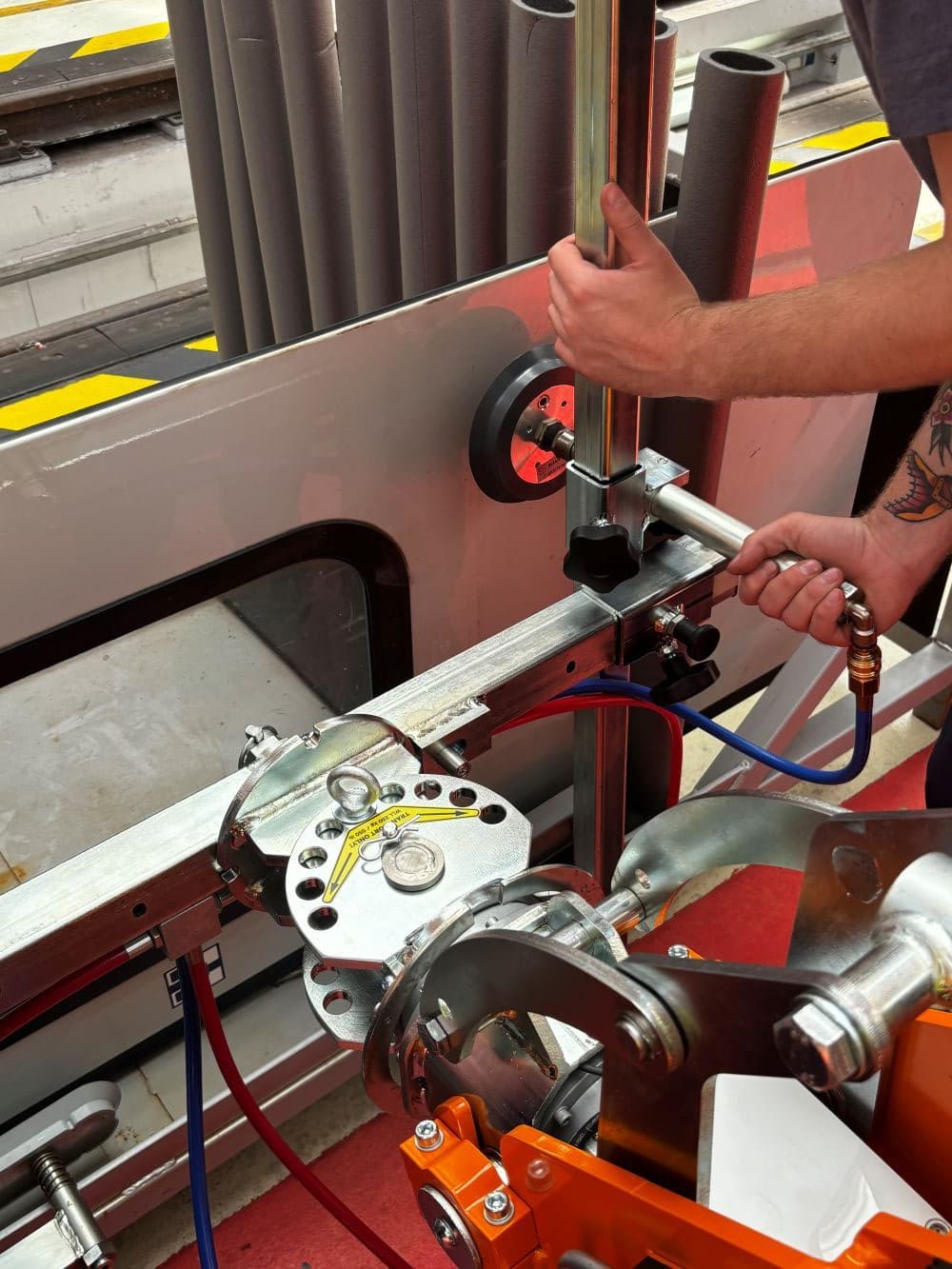 In the workshop, space is limited, and the work on the train set is done a few meters off the ground. This not only complicates the workflow but also creates poor working positions, and the use of traditional lifting systems is not possible as they are too large.