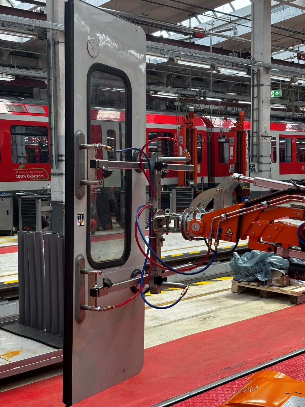 In the future, defective train doors and windows at S-Bahn Hamburg will be replaced with the help of a vacuum lifter from Smartlift. The lifter ensures an efficient and safe work process, so employees no longer have to manually lift the heavy doors into place on the train cars.