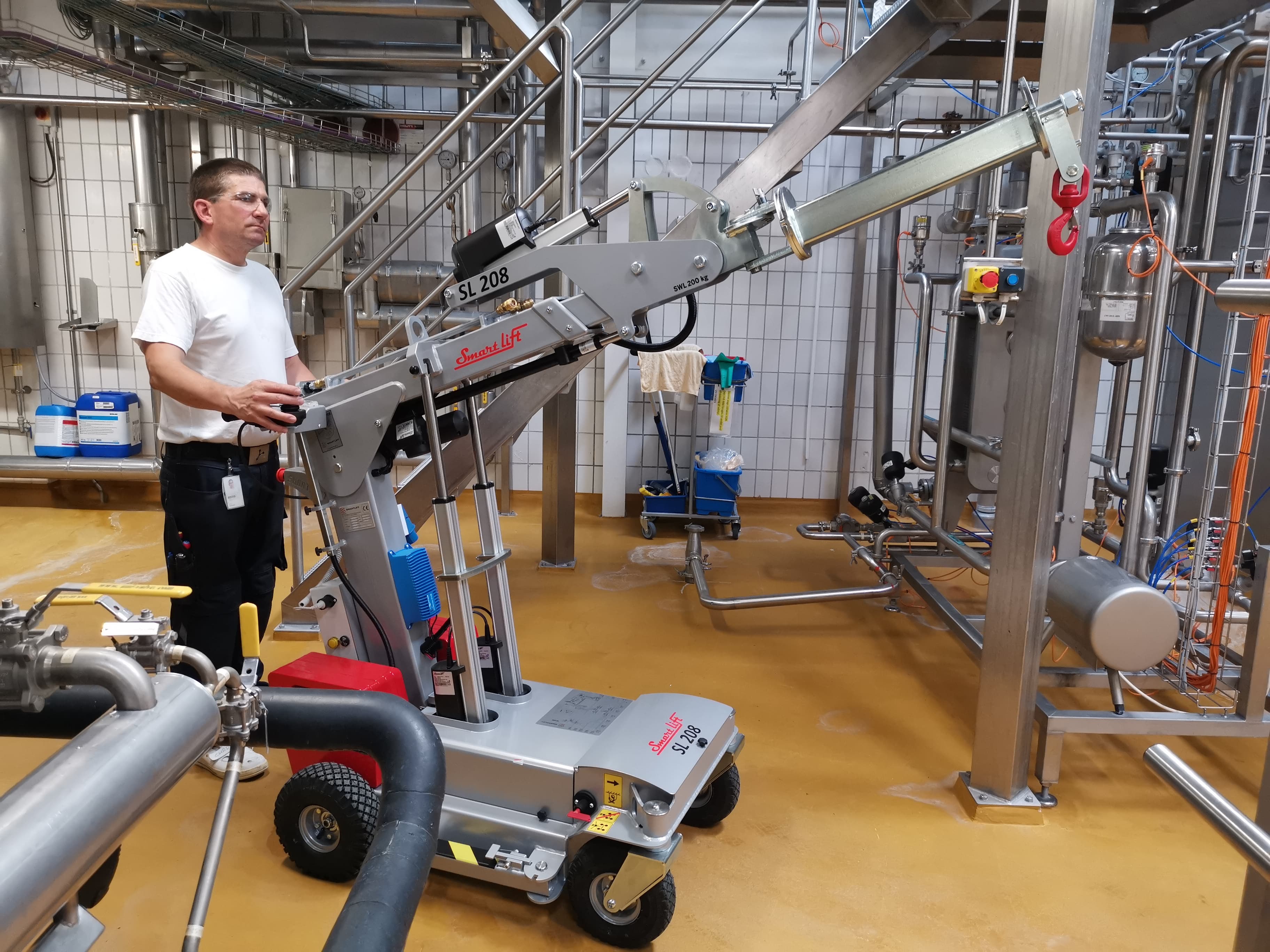 The Smartlift SLI 208 is a dynamic helper at the workplace. This compact multi lifter combines strength and finesse. With the ability to lift up to 200 kg and reach up to 230 cm, the SLI 208 makes maneuvering heavy materials easy, even in tight spaces, thanks to its narrow turning radius of only 88 cm. Its versatility is evident in its ability to quickly switch between different tools such as hooks or pallet forks, making it ideal for a variety of industries from construction to factories. Its battery-powered design ensures long-lasting, emission-free operation for up to 10 hours. With the SLI 208, heavy lifting becomes a breeze, ensuring both efficiency and safety at the workplace.