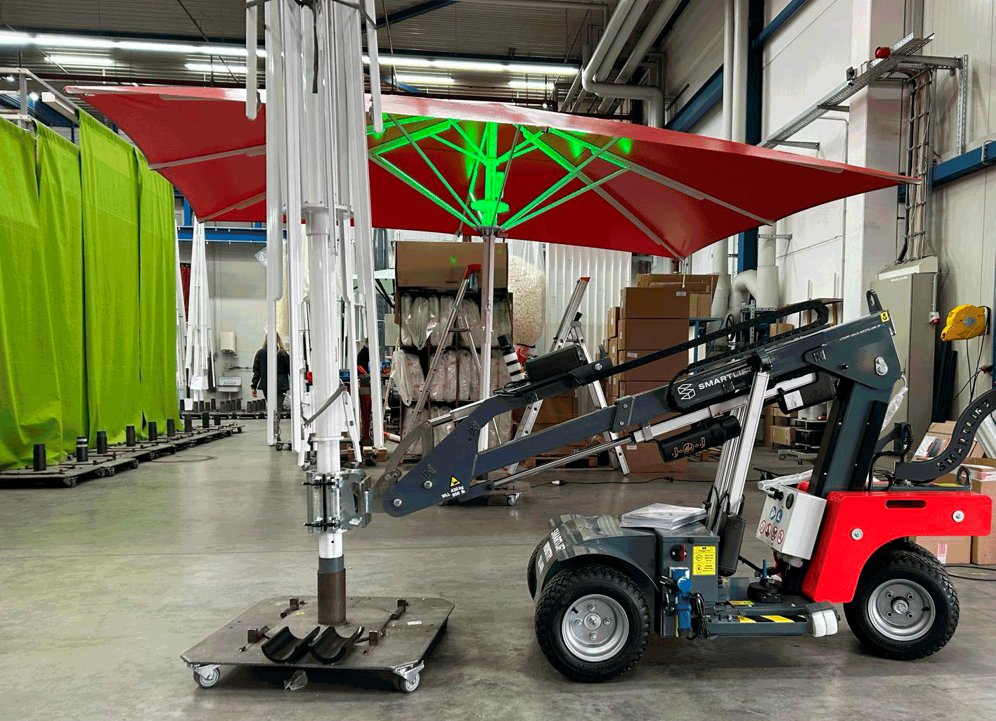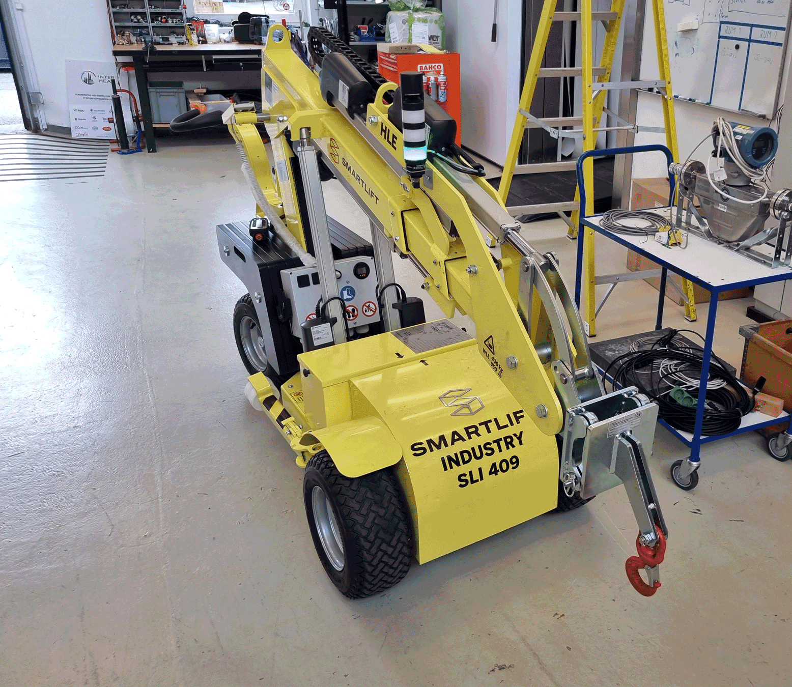 The Smartlift SLI 409 HLE is an extremely versatile tool that significantly expands the possibilities at the workplace. This model, sharing the basic characteristics with the SLI 409, takes efficiency to a higher level with its enhanced reach. With a lifting capacity of up to 430 kg and a maximum height of 325 cm, the SLI 409 HLE is ideal for tasks that require extra lifting height and strength. Its arm, with a double extension of 2 x 60 cm, enables precise and safe work, even in tight areas. Powered by a rechargeable battery, this multi lifter can operate continuously for up to 10 hours, ensuring an uninterrupted work process. Designed to function efficiently in narrow spaces, and its nearly silent operation makes it ideal for a variety of work environments. The SLI 409 HLE is not just a practical tool; it is a reliable and durable partner in many industries, from dairy to industrial.