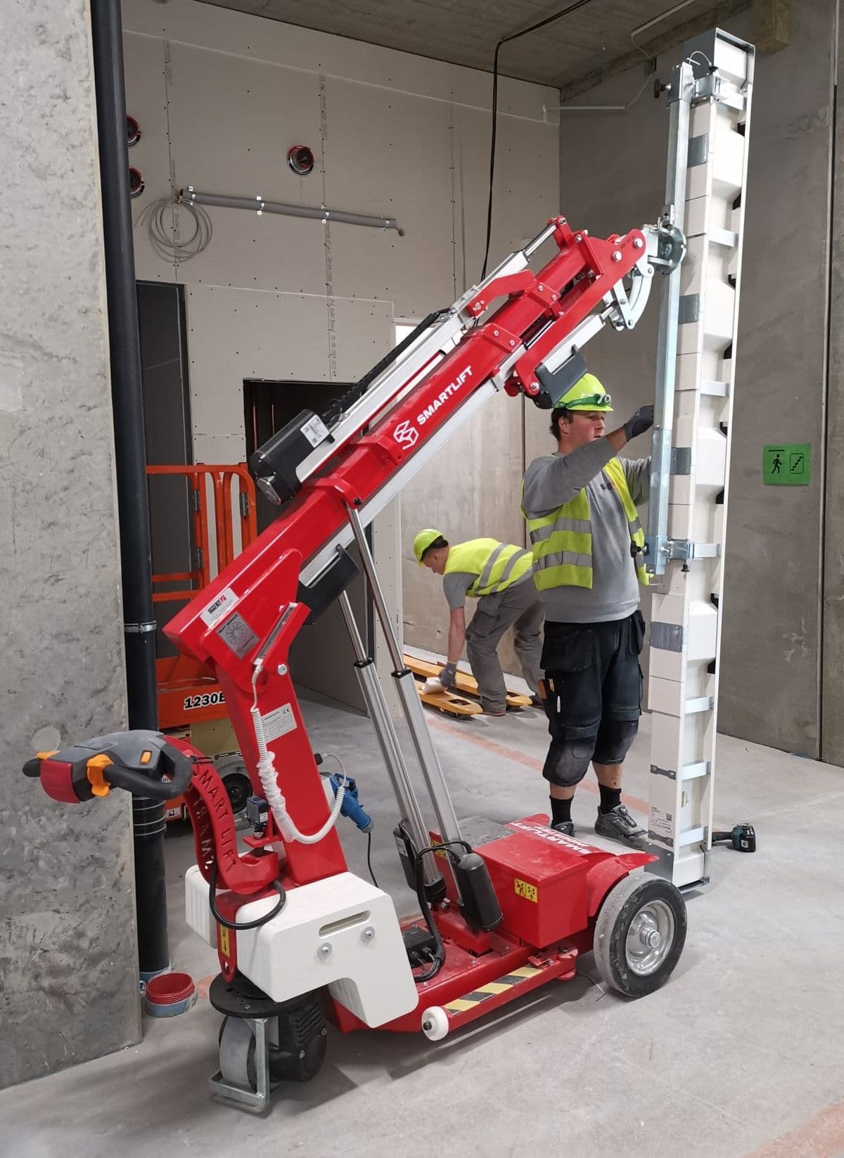 With the Smartlifts, Uggerly Installation has two employees for each Smartlift to carry out the task of installing the 100-125 kg busbars, and the Smartlifts ensure that the employees are not exposed to heavy and challenging lifts during the working day.