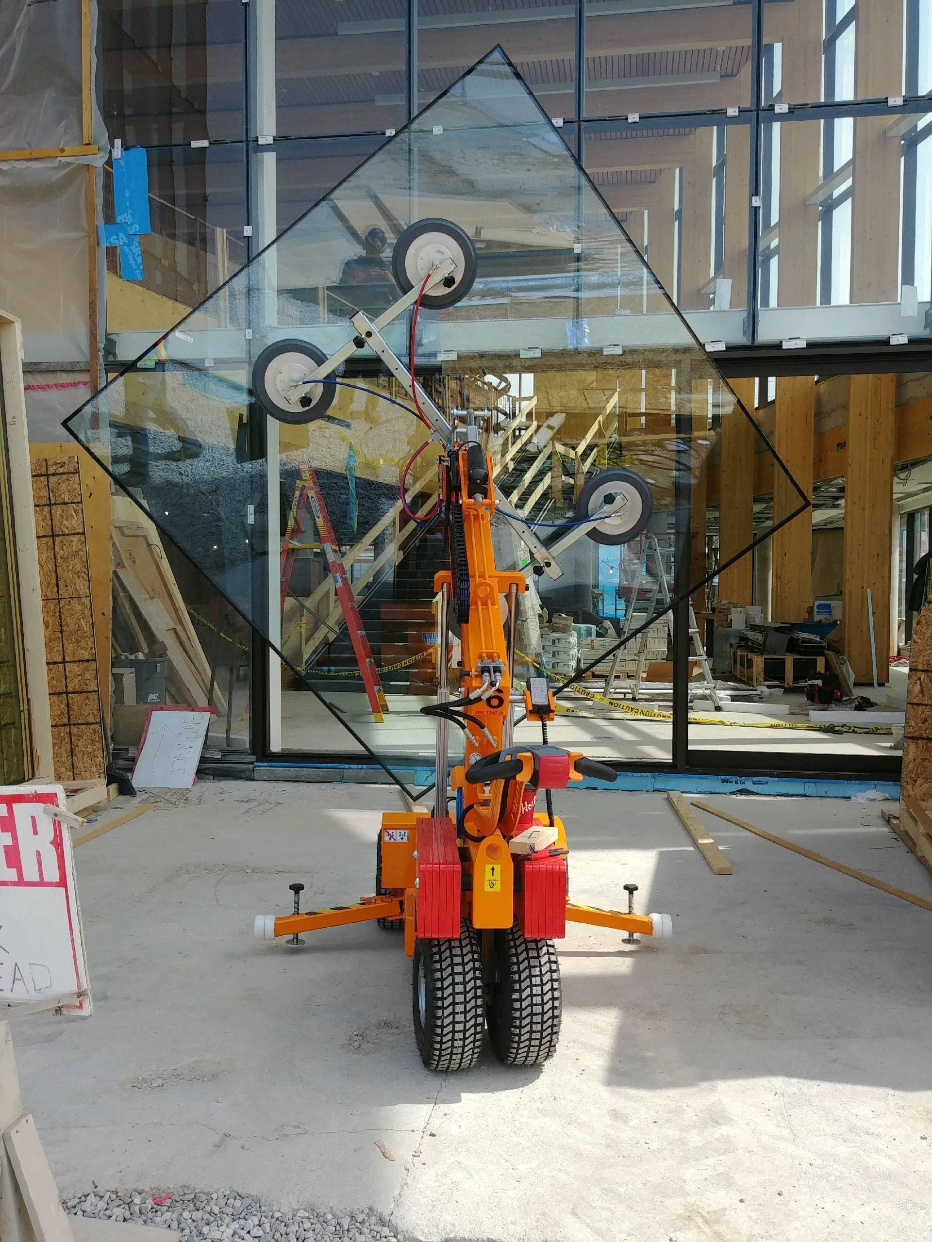 Our window and glass lifters assist with the heavy lifting and the user-friendly navigation help the employee avoid awkward and strenuous lifts. When you work outside on the construction site, the window lifter moves the object safely and efficiently regardless of terrain.